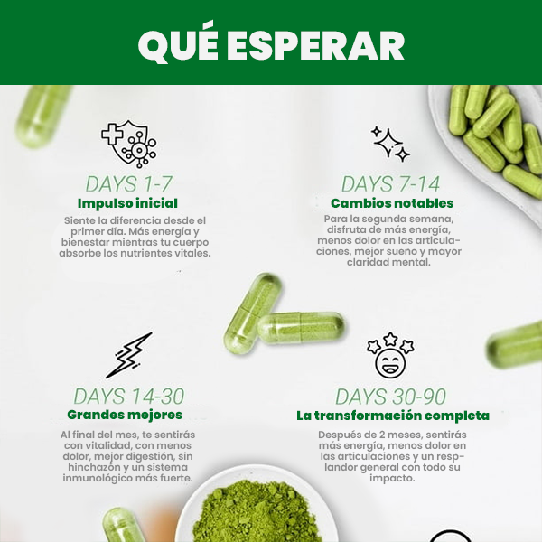 Tal vez lo que necesites no es más café ni más suplementos mezclados, sino una solución natural que lo abarque todo. Imagina una cápsula diaria que reúna en sí misma lo necesario para que tu cuerpo funcione mejor... sin complicaciones ni ingredientes sintéticos. Una fórmula que, en lugar de enmascarar los síntomas con estimulantes artificiales, actúa desde la raíz nutriendo tus células, equilibrando tu digestión y devolviéndote la claridad mental y la energía que necesitas para rendir en tu día.