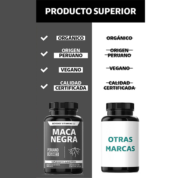 Eso es lo que propone Maca Negra Beyond Vitamins, un suplemento elaborado con maca negra peruana orgánica 100 % pura y libre de azúcares, lácteos, soya, edulcorantes, colorantes y conservantes.