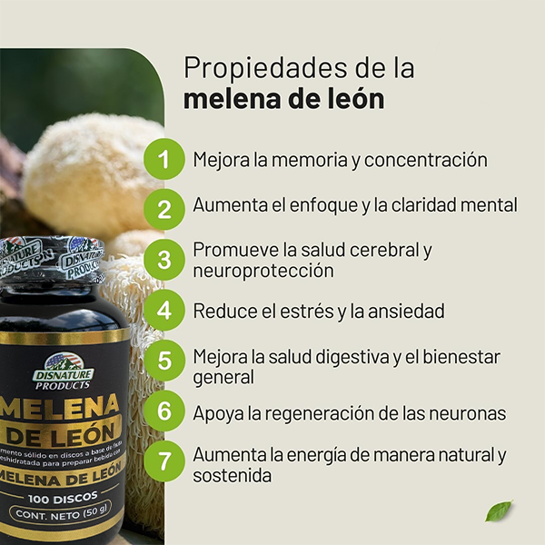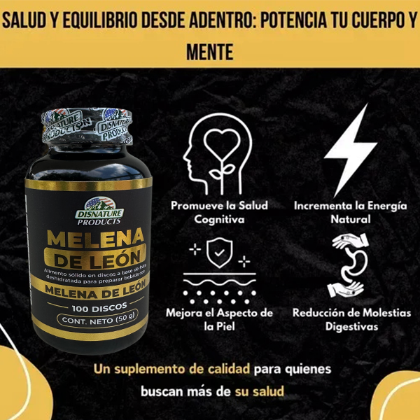 Haz de la Melena de León parte de tu rutina diaria y descubre cómo un pequeño hábito puede marcar la diferencia en tu bienestar integral. Ordena hoy mismo tu frasco de 100 discos y empieza a experimentar los beneficios de este poderoso hongo medicinal. Tu mente, tu cuerpo y tu energía lo agradecerán.