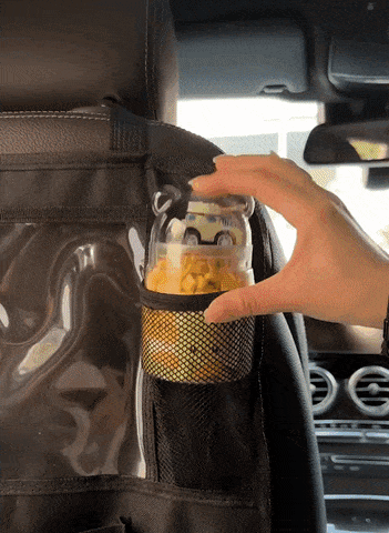Es perfecto para llevar bebidas, snacks, juguetes, documentos, botellas grandes e incluso una tablet de hasta 10 pulgadas gracias a su bolsillo transparente.
