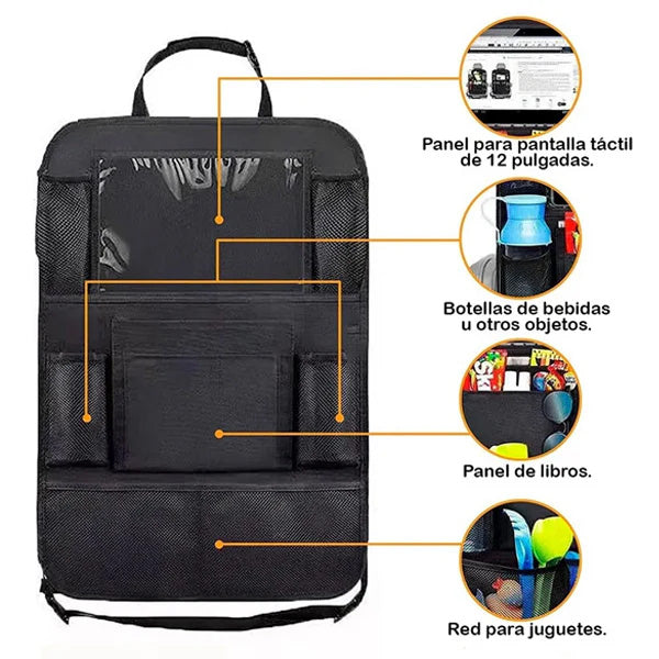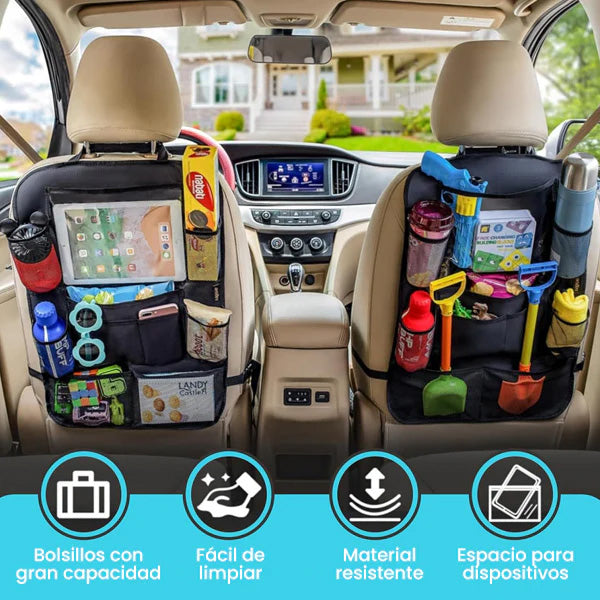 La buena noticia es que existe una solución práctica, elegante y resistente: el Organizador para Asiento de Carro.