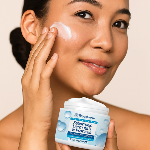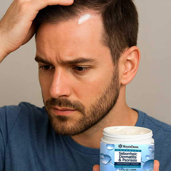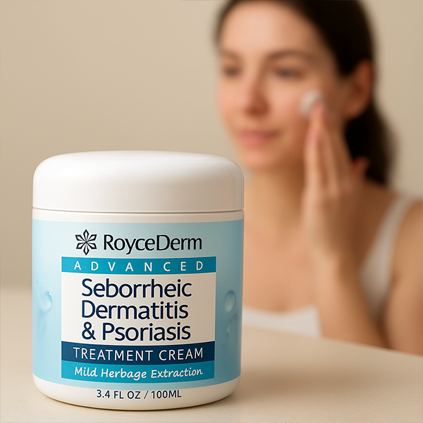a RoyceDerm Seborrheic Dermatitis & Psoriasis Cream no solo alivia la incomodidad inmediata de la picazón y la descamación, sino que también trabaja profundamente para restaurar la barrera natural de la piel.